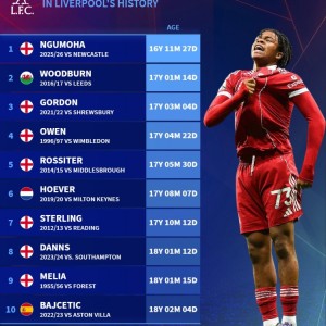 ewc电竞世界杯-利物浦队史最年轻破门球员榜:恩古莫哈居首,欧文第4&斯特林第7